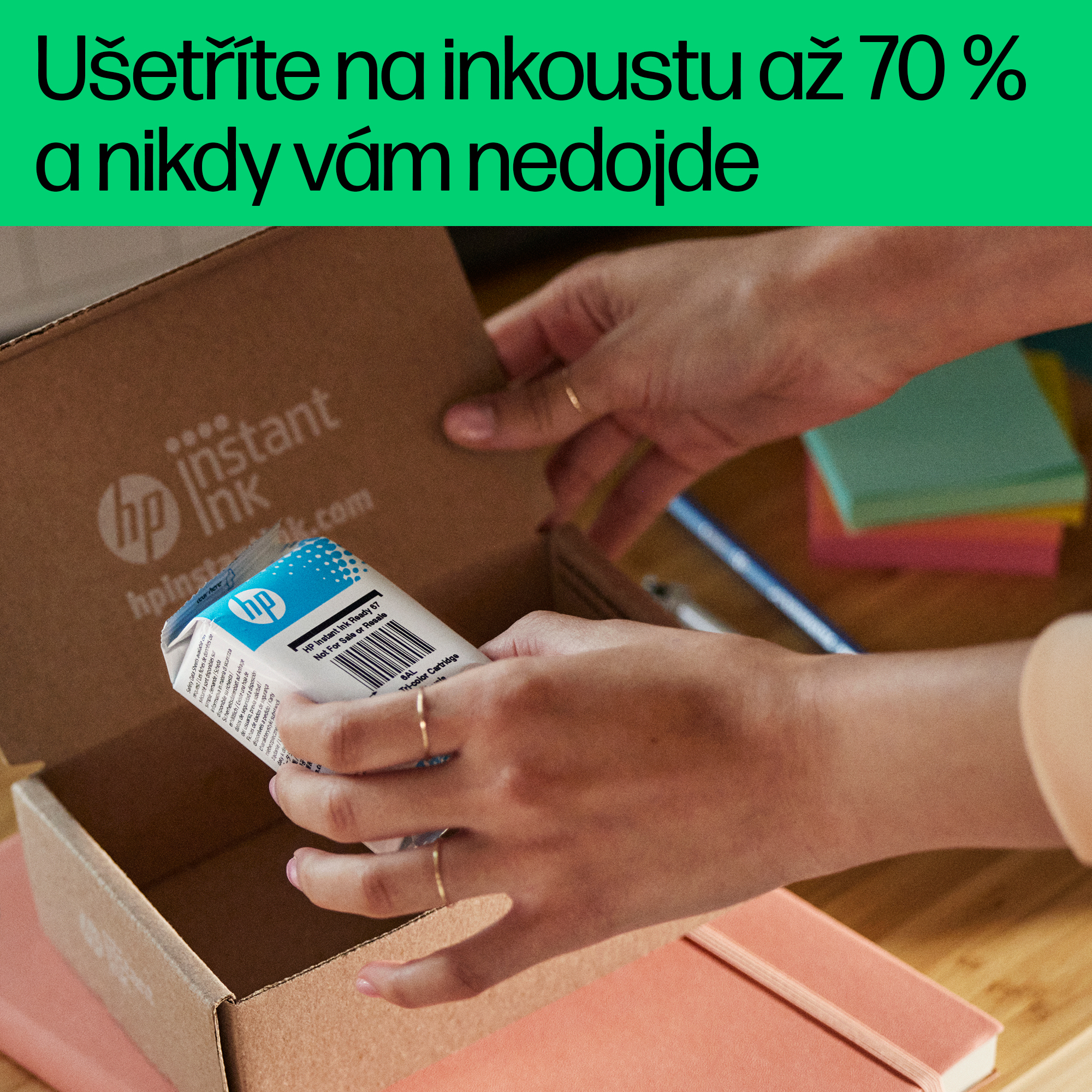 Se službou Instant Ink ušetříte až 70 % nákladů na inkoust. Zaregistrujte se a získejte inkoust s automatickým doručováním za cenu od 53 Kč měsíčně.[5,6]