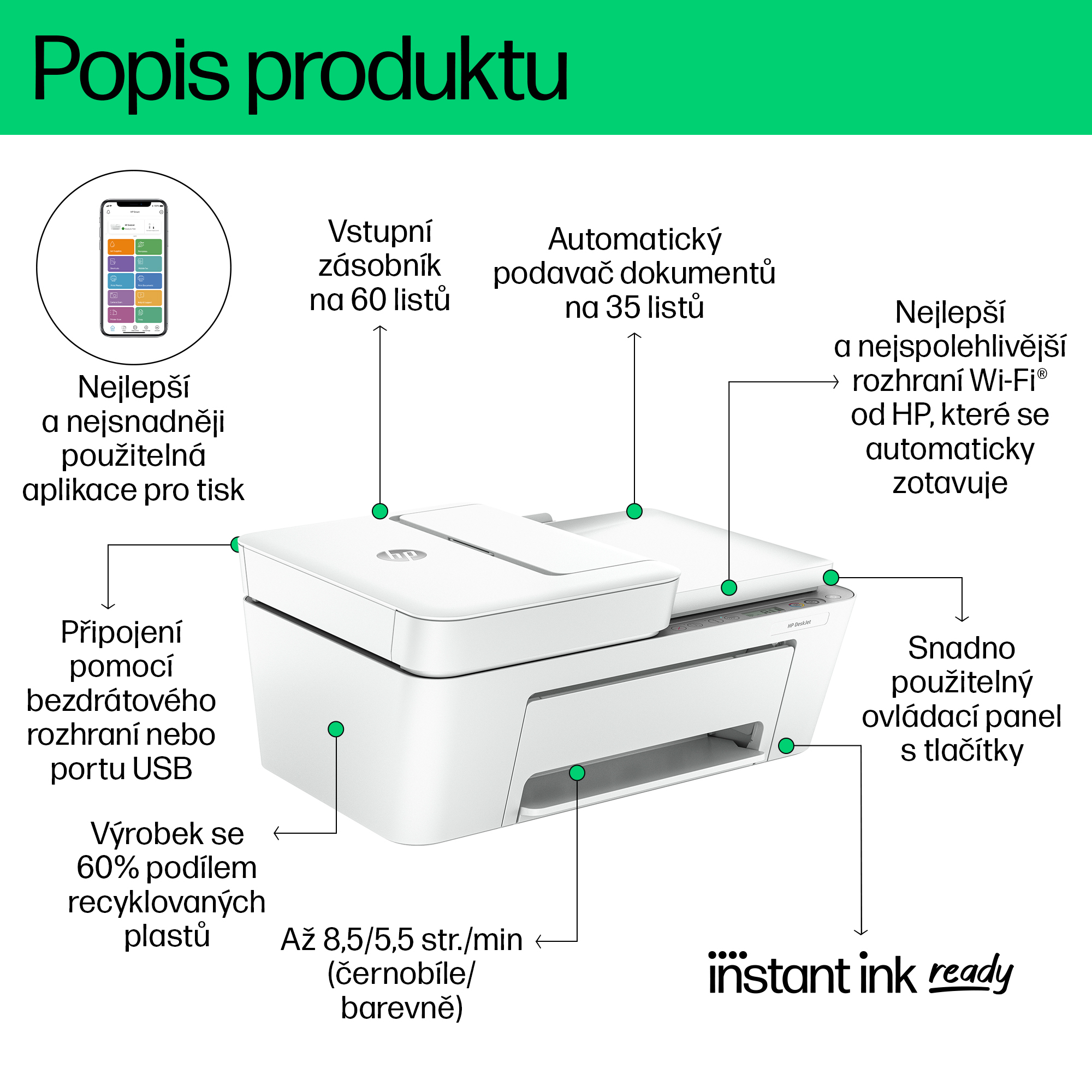 Toto je tiskárna s podporou služby HP+. Vyberte si při nastavení produktu službu HP+ a získáte výhody. Služba HP+ vyžaduje účet HP, nepřetržité internetové připojení a výhradní použití originálních inkoustových kazet HP po celou dobu životnosti tiskárny. Další informace jsou k dispozici na adrese: http://www.hp.com/plus